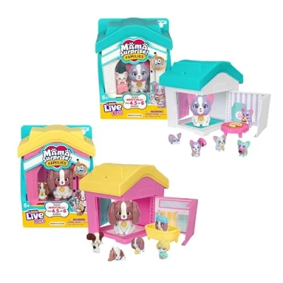 Little Live Pets Mama Surprise Families Mama's House Frenchie & Spaniel Bundle, 2 Unique Houses Puppies, Each Magically Has 4 6 Babies, Fold Out Playset, 80+ to Collect, Fun Gift For Kids
