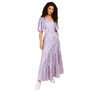 Little Mistress Floral Satin Maxi Wrap Dress Multi
