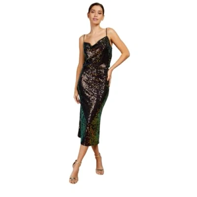 Little Mistress Stripe Satin Pephem Midi Dress,14 Multi