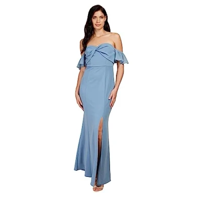 Little Mistress Steel Blue Twist Detail Bardot Maxi Dress, 16