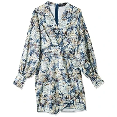 Little Mistress Women's Satin Floral Wrap Dress, Size 8 UK, Multicolour