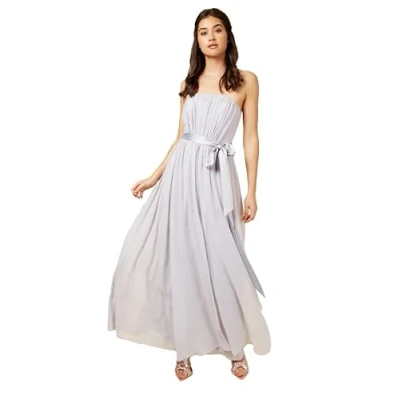 Little Mistress Women's Tie Waist Multiway Bridesmaid Maxi Dress, Grey, 10 UK