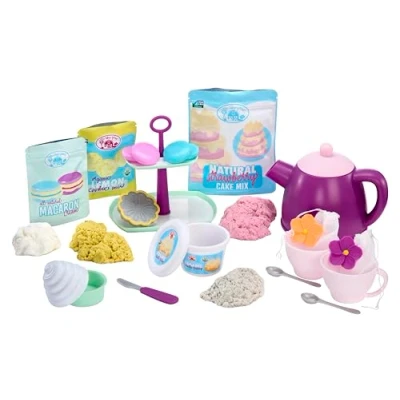 IT'S TEATIME: Kids will enjoy this realistic tea and dessert set. With a steaming tea pot and Make-It! Mix play ingredients, kids can discover their passion for cooking and express their creativity at the same time PLAY & PRACTICE: This hyper-realistic role play set teaches kids the basics of making their own tea and treats, encouraging play to become practice and practice to become real MOULDABLE: The “ingredients” are made of reusable Make-It! Mix that easily shapes into detailed play food. This inedible sand compound allows for tactile and creative play, helping kids experiment with the step-by-step process of making a teatime spread STEAMING TEA POT: Teapot switches on and steams just like the real thing COLOUR-CHANGING CUPS: Pour cold water in the teacups for a colour change that mimics brewing tea HYPER-DETAILED FOOD PLAYSET: The tea pot, ingredients, and utensils are specially designed to mimic the real thing, so kids can imagine themselves as real chefs. This kit also includes an easy-to-read recipe card with visual instructions REALISTIC ACCESSORIES. This cooking role play set includes 2 colour-change tea cups with saucers, 1 tin with tea bags, macaron shells, 1 macaron filling bag with Make-It! Mix fluff, 1 cake frosting container with Make-It! Mix play sand ALSO INCLUDES: 1 cake pan mould, 1 cake spreading knife, 1 cake mix bag with Make-It! Mix play sand, hibiscus flowers, 1 frosting top mould, 1 flower cookie cutter, 1 cookie mix bag with Make-It! Mix play sand, and 1 detailed recipe card COLLECT THEM ALL: Explore the other Creative Chefs kits and refill packs to create the ultimate kid-friendly kitchen experience for your chef-in-training. Surprise your little one with this present. Suitable for kids ages 3+ CONSUMER NOTE: Creative Chefs products have no gluten. The Make-It! Mix play sand is NOT EDIBLE, Manufacturer: MGA Entertainment