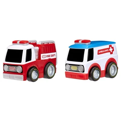 LET 'EM RACE - The Crazy Fast Cars Racin' Responders emergency themed 2-Pack includes an ambulance & a fire truck. Realistic toys that encourage hands-on active play, pull them back to supercharge and then let go to watch them race up to 50ft/15m PERFECT FOR SMALL HANDS - Crazy Fast Cars are easy-to-hold thanks to their rounded design and are approximately 3 ½" / 3.9cm in length. They will fit perfectly into the hands of preschoolers, so they can just pull 'em back and let 'em fly ENCOURAGE IMAGINATION - Little Tikes Crazy Fast Cars look like real vehicles kids see every day. Play with these toys will help encourage role-play and develop imagination in little ones. They will also assist with the development of motor skills COLLECT THEM ALL - Put your collection to the ultimate speed test with 7 Crazy Fast Cars to collect: 4x4 Truck, Ice Cream Truck, Tuner Car, Muscle Car, Racin' Responders 2-pack, High-Speed Pursuit 2-pack, and the 3-in-1 Rollin' Bowlin' Racin' Playset AGES 2 PLUS - Little Tikes Crazy Fast Cars are suitable for children ages 2 years and older, Manufacturer: MGA Entertainment