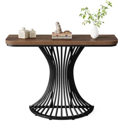 Industrial Aesthetic: With a rustic brown finish and a geometric metal base, this console table sets an eye-catching industrial tone to your interior decor. Durability: The construction is robust with a metal base that ensures stability and longevity. It's built to withstand everyday use. Versatility: It can serve a variety of purposes - as an entryway table for placing keys and mail, a small sofa table for displaying photos or books, or even as a console table in the hallway. Easy Assembly: The table is designed for easy assembly, coming with clear instructions and necessary hardware. You won't need to hire a professional to set it up. Compact Design: Its size of just 99 cm makes it a great fit for small spaces, be it entrance lobbies, hallways, or living rooms.