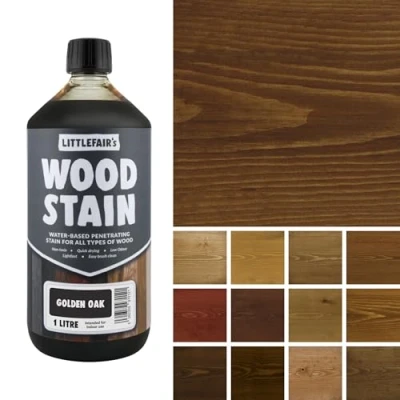 AmazonWONDERFUL WOOD AWAITS - Achieve a premium finish with Littlefair's water-based stain for bare, sanded wood, accentuating the natural wood grain's details, and adding depth and character to your work. IMPORTANT INSTRUCTIONS: the wood stain needs to be applied to bare wood so it can soak in. If it is applied over an existing finish, it will run off. ECO-FRIENDLY & SAFE - Littlefair's stain for wood furniture dye is water-based, natural and free from toxic chemicals, ensuring a safe and eco-friendly choice for your woodworking projects. FAST DRYING & LOW ODOUR - Say goodbye to long waiting times and unpleasant odours. Littlefair's water based stain for wood quickly dries with minimal odour so that you can keep your project on the fast track. EFFORTLESS CLEANUP - Cleaning up is a breeze with our wood dye. Brushes are easily cleaned, saving you time and ensuring your tools are always ready for the next project. VERSATILE BRITISH CRAFTSMANSHIP - Crafted lovingly in the North West of England using the unique colour formulae created by Mr. Littlefair himself. Our wood dyes are perfect for indoor wood, including doors, tables, chairs, shelves and more. Embrace a touch of British heritage in every drop., Weight: 2.0625 Pounds, Manufacturer: Littlefair's
