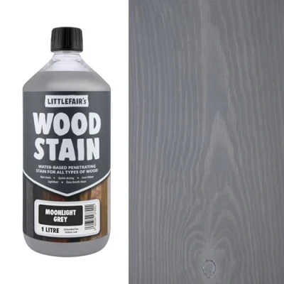 Littlefair's Wood Stain Water Based 1 LTR Indoor Furniture Light & Dark Finishes Special Non Toxic Eco Friendly Formula for Crafts Colour: Moonlight Grey