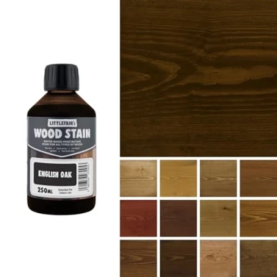 Littlefair's Wood Stain Water Based 250 ml Indoor Furniture Light & Dark Finishes Special Non Toxic Eco Friendly Formula for Crafts Colour: English Oak