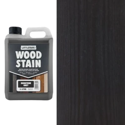 Littlefair's Wood Stain Water Based 5 LTR Indoor Furniture Light & Dark Finishes Special Non Toxic Eco Friendly Formula for Crafts Colour: Ironstone Grey