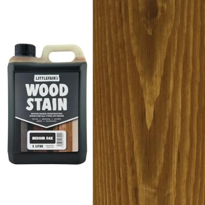 Littlefair's Wood Stain Water Based 5 LTR Indoor Furniture Light & Dark Finishes Special Non Toxic Eco Friendly Formula for Crafts Colour: Medium Oak