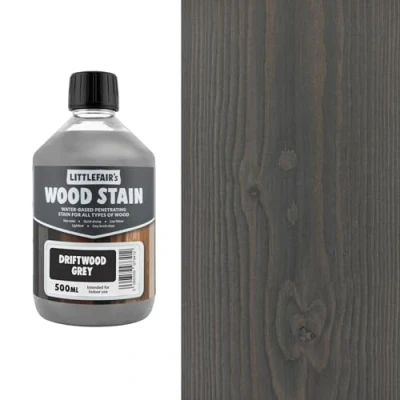 Littlefair's Wood Stain Water Based 500 ml Indoor Furniture Light & Dark Finishes Special Non Toxic Eco Friendly Formula for Crafts Colour: Driftwood Grey