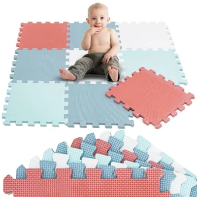 9-PIECE BABY PUZZLE MAT - Large foldaway play mat for children and babies from day 1. The 1 cm thick sensory mats are soft and insulating - ideal for playing on cold and hard floors. 100% PLASTICIZER-FREE - Playmat in the children's room, crawling rug in the garden... As required by law, the interlocking tiles are of course free of plasticisers (BPA), formamide and phthalates. ANTIALLERGENIC SURFACE - For bedroom and nursery: Perfect as kids mat on carpet! The 30x30 cm mats made of high-density EVA foam (sponge rubber) reliably protect toddlers from house dust and mites. WITH ANTI-SLIP PROFILE - From learning to crawl to fall protection for 1st steps, from foldable activity pad in the playpen to gym mat in the game corner: The hard-wearing foam provides extra grip. FLAWLESS INTERLOCKING - Plain monochrome - or colourful? For an XXL puzzle carpet, the foldable floor protection is infinitely expandable, the improved design of the teeth ensures grip without gaps., Manufacturer: OmniDeal