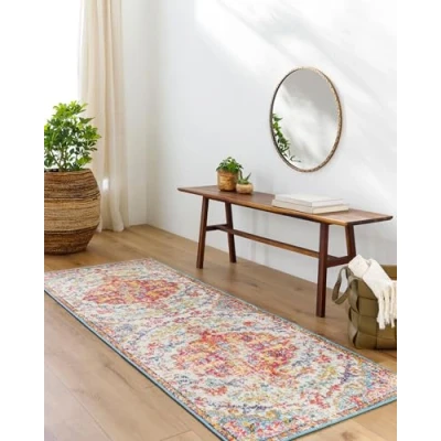Livabliss Asmara Vintage Rug Runner Rugs Living Room 80x220 cm, Hallway, Kitchen Area Traditional Multicoloured Boho Style, Easy Care Bohemian Large Red, Orange, Teal, Beige