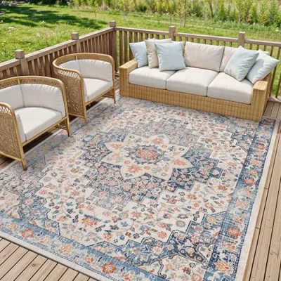 Livabliss Assa Indoor Outdoor Rug Large Boho Rugs for Living Room 200x275 cm Dining, Kitchen Carpet, Patterned Neutral & Coloured Rugs, Waterproof, Stain Durable Blue, Beige, Rust
