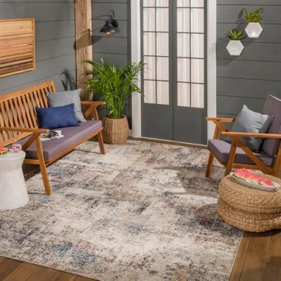 Livabliss Asward Indoor Outdoor Rug Large Boho for Living Room 120x170cm, Dining, Kitchen Vintage Patterned Neutral & Coloured Rugs, Waterproof, Stain Durable, Beige and Blue