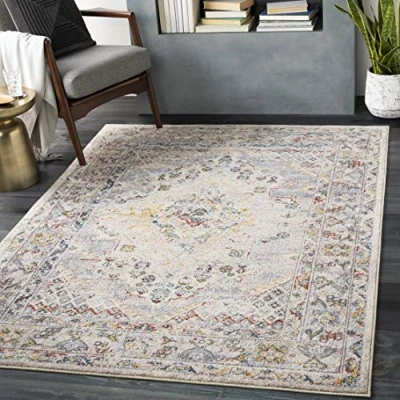 Livabliss Casablanca Vintage Rug Area Rugs Living Room 200x274 cm, Dining Floor, Kitchen, Traditional Multicoloured Boho, Easy Care Pile, Bohemian Large, Taupe and Cream