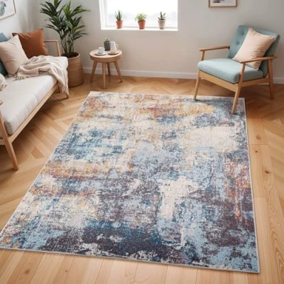 Living room rug collection featuring modern style, luxurious abstract and marble rug designs and geometric patterns in multicoloured combinations of Charcoal, Medium Grey, Light Grey, Light Blue, Dark Blue, Ivory, Wheat and Brick Red colours Strong and durable soft area rugs in a range of small, medium, large, round rugs and runner rug sizes, machine woven in polypropylene, with a virtually non-shedding 8 mm thick pile; soft and luxurious, whilst hard wearing, marble rugs Designed to withstand everyday wear; this living room rug is child approved and pet friendly. Oeko-Tex standard 100 certified; free of any harmful substances and hypoallergenic Easy care pile cleaning; for long lasting lounge rugs for your living room, vacuum regularly and blot up small floor rug stains with a mild detergent or carpet cleaner Perfect modern area rugs for living room and other high traffic rooms in your home; lounge, dining room, kitchen, corridor, office, bedroom, playroom and hallways