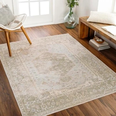 Livabliss Dukan Machine Washable Rug Vintage Area Rugs Living Room, Large 120x170 cm Traditional Boho Style, Dining Kitchen, Outdoor, Hallway Beige, Ivory and Light Grey