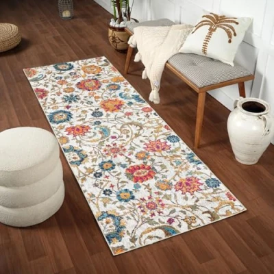 Livabliss Fonfria Abstract Runner s Living Room 80x220 cm, Hallway, Dining Area Modern Marble Large, Soft Luxurious Easy Care Medium Pile, Cream, Orange, Blue, Pink