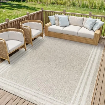Indoor outdoor rug collection featuring geometric abstract striped, chequered and diamond patterned rug designs in multi combinations of Oatmeal, Grey, Light Beige, Taupe rug colours Durable rugs machine woven in Turkey with 100% polypropylene fibres; these flat pile colourful rugs are designed for high traffic indoor/outdoor areas Designed to withstand everyday wear; this rug is child approved and pet friendly for heavily frequented spaces; Oeko-Tex standard 100 certified Easy care cleaning; created with the outdoor elements in mind. UV Weather and Stain Resistant and simply shake, spot clean, vacuum or hose off as needed to clean Perfect for high traffic areas of your home; living room, dining room, kitchen and hallways, as an awning carpet and any outside setting: poolside, covered patios or balcony decking