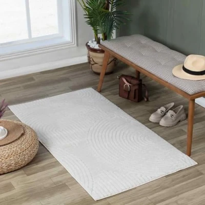 Living room and kitchen rug collection featuring modern style, vintage, abstract and geometric patterned rug designs in neutral and coloured combinations of White rug colours Strong and durable area rugs for kitchen, living and dining rooms in a range of small, medium, large, round and runner rug sizes, machine woven in polypropylene with a non-shedding flat pile; durable, hard wearing, patterned neutral & coloured rugs Designed to withstand everyday wear; this waterproof modern boho rug is child approved and pet friendly for heavily frequented indoor and outdoor spaces. Oeko-Tex standard 100 certified; free of any harmful substances and hypoallergenic Easy care cleaning; for long lasting large living room rugs vacuum regularly and blot up small floor rug stains with a mild detergent or carpet cleaner. For indoor outdoor rug use, simply shake, spot clean, vacuum or hose off as needed to clean The perfect large kitchen rug in vintage and geometric rug designs for high traffic areas in your home; living room, dining room, bedroom, hallway runner, office, playroom and any outside setting: outdoor patio, garden, poolside or balcony decking