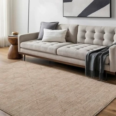 Modern style patterned rug in Beige, Tan and Brown, adding a warm, neutral look that suits contemporary, minimal and modern home interiors. Area accent rug ideal for living room, dining room and bedroom use, designed to suit medium spaces and enhance modern décor styles. Medium pile rug delivers a soft, comfortable underfoot feel while remaining practical for everyday indoor use, foot traffic and furniture placement. Cotton backing helps keep the rug securely in place on indoor floors, making it suitable for busy households and high-traffic areas. Easy care indoor rug designed for daily living; vacuum regularly and spot clean to maintain colour, texture and long-lasting appearance.