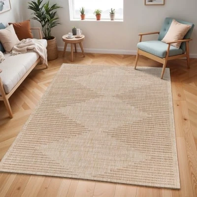 Livabliss Kercem Indoor Outdoor Rug Large Boho Rugs for Living Room 200x275 cm Dining, Kitchen Carpet, Patterned Neutral and Coloured Rugs, Waterproof, Stain Durable Tan, Cream, Beige