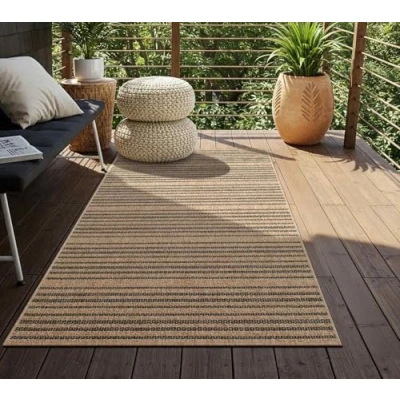Living room and kitchen rug collection featuring modern style, vintage, abstract and geometric patterned rug designs in neutral and coloured combinations of Tan, Black rug colours Strong and durable area rugs for kitchen, living and dining rooms in a range of small, medium, large, round and runner rug sizes, machine woven in 100% Polypropylene with a non-shedding flat pile; durable, hard wearing, patterned neutral and coloured rugs Designed to withstand everyday wear; this waterproof modern boho rug is child approved and pet friendly for heavily frequented indoor and outdoor spaces; oeko-Tex standard 100 certified; free of any harmful substances and hypoallergenic Easy care cleaning; for long lasting large living room rugs vacuum regularly and blot up small floor rug stains with a mild detergent or carpet cleaner; for indoor outdoor rug use, simply shake, spot clean, vacuum or hose off as needed to clean The large kitchen rug in vintage and geometric rug designs for high traffic areas in your home; living room, dining room, bedroom, hallway runner, office, playroom and any outside setting: outdoor patio, garden, poolside or balcony decking