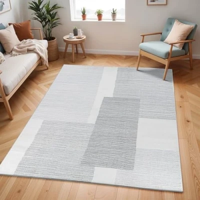 Livabliss Lahti Abstract Rug Area Rugs Living Room 160x220 cm, Dining Room, Lounge, Kitchen, Bedroom Modern Marble Large Rug, Soft Luxurious Easy Care Medium Pile, Grey, White and Ivory