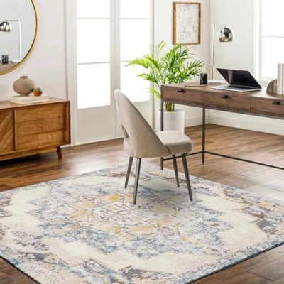 Living room rug collection featuring classic, traditional patterned and bohemian rug designs in a shabby chic oriental style, multicoloured rug combinations of Ice Blue, Medium Grey, Light Grey, Blue, Mustard, Dark Brown colours Strong and durable soft area rugs in a range of small, medium, large, extra large, round rugs and runner rug sizes, machine woven in polypropylene, with a virtually non-shedding 8 mm thick pile; durable, moisture, bleach and stain resistant Designed to withstand everyday wear; colourful and hard wearing low pile rugs for living room are child approved and pet friendly; Oeko-Tex standard 100 certified; free of any harmful substances and hypoallergenic Easy care pile cleaning; for long lasting coloured lounge rugs vacuum regularly and blot up small floor rug stains with a mild detergent or carpet cleaner Optimal area rugs for living room and other high traffic rooms in your home; lounge, dining room, kitchen runner, corridor, office, bedroom, playroom and hallways