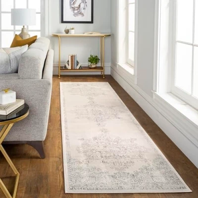 Livabliss Roma Vintage Hallway Runner s Living Room 80x220 cm Scandi Neutral, Traditional Patterned Boho Style, Natural Easy Care Pile Runners, Ivory and Grey