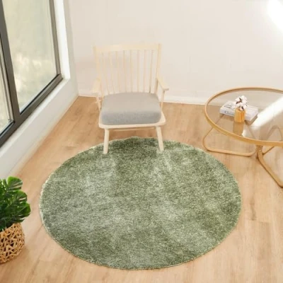 Livabliss Shaggy Rug Modern Berber Living Room 160x160 cm, Soft Rugs for Bedroom Neutral Boho Fluffy Rug, Easy Care Plush Thick Pile Round Sage