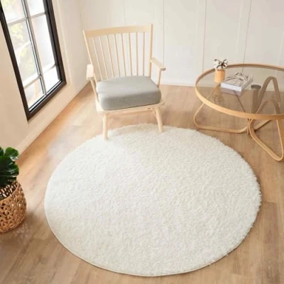 Livabliss Shaggy Rug Modern Berber Rugs Living Room, Large 160 cm, Soft for Bedroom Neutral Boho Fluffy Rug, Easy Care Plush Thick Pile White