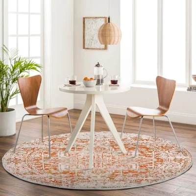 Livabliss Syracusa Vintage Round Area Carpet 160 cm for Living Room, Dining, Kitchen Traditional Multicolour Boho Style, Easy Care Pile, Large Bohemian in Burnt Orange, Beige and Pink