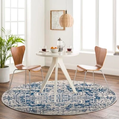 Livabliss Syracusa Vintage Rug Area Rugs for Living Room 160 cm, Bedroom Scandi Neutral Rugs, Traditional Patterned Boho Style, Natural Easy Care Pile Large Blue and Beige