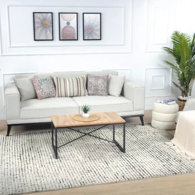 Living room rug collection featuring modern style, luxurious abstract and marble rug designs and geometric patterns in multicoloured combinations of cream, black colours Strong and durable soft area rugs in a range of small, medium, large, round rugs and runner rug sizes, machine woven in 100% polyester, with a virtually non-shedding, 14mm thick pile; soft and luxurious, whilst hard wearing, marble rugs Designed to withstand everyday wear; this living room rug is child approved and pet friendly. Oeko-Tex standard 100 certified; free of any harmful substances and hypoallergenic Easy care pile cleaning; for long lasting lounge rugs vacuum regularly and blot up small floor rug stains with a mild detergent or carpet cleaner Perfect area rugs for living room and other high traffic rooms in your home; lounge, dining room, kitchen runner, corridor, office, bedroom, playroom and hallways