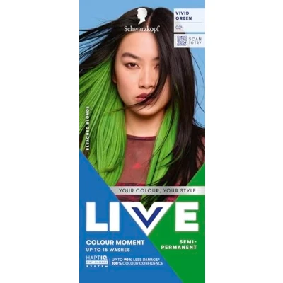 Boots24 Advantage card points. Schwarzkopf LIVE Colour Moment 024 Vivid Green Semi-Permanent Hair Dye FREE Delivery on orders over 45 GBP.
