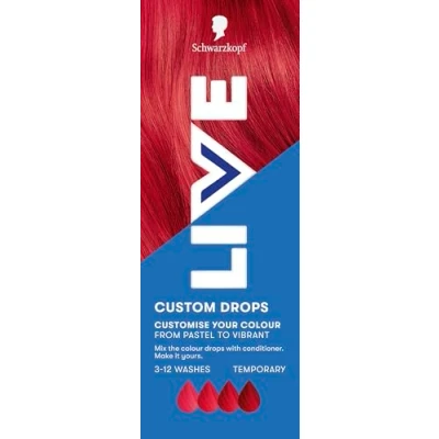 Buildable intensity: The temporary red hair colour drops are designed to be mixed with conditioner and allow customisable intensity. From pastel hair to vibrant hair colours - The more drops are being used, the more intense the hair result Endless shades: Blue, pink or purple, the shades are endless. The temporary hair colour drops can be mixed with other colours from the line to create unique colour results Easy application: Put on gloves, mixing temporary hair colour drops and conditioner in hands. Apply on towel-dried hair. Leave in for 5 minutes. Rinse, dry and style LIVE commitments: Featuring a silicone-free and vegan formula** that is free from animal derived ingredients, this LIVE hair dye also features a 100% recycled bottle*** and recycled paper leaflet Package contents: Bottle of Schwarzkopf LIVE Temporary Colour Custom Drops Fiery Red 30 ml. Wash out hair dye inter-mixable with other LIVE Colour Drops