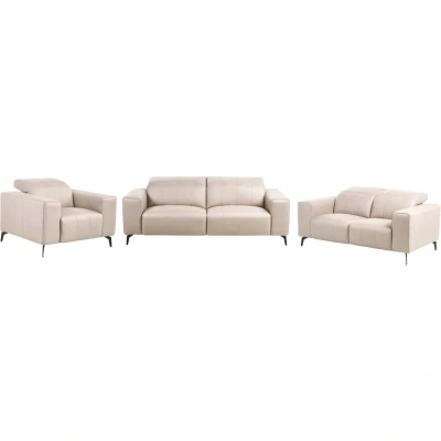 Eco Leather Sofas and Armchair Set with Adjustable Headrest. This contemporary living room set brings comfort and style together with a cohesive, modern look. Featuring a 3-seater sofa, 2-seater sofa, and armchair, each piece is upholstered in high-quality faux leather that’s both elegant and easy to maintain. Adjustable headrests enhance relaxation by offering personalised support across the collection. The generously padded seats and refined stitching details create a sophisticated atmosphere in any home. Perfect for both everyday lounging and hosting guests, this set transforms the living room into a warm, inviting space. Details: Product Type: Sofa Set General Color: Beige, Black Frame Colour: Black Shade: Taupe Material Type: Faux Leather Main Material: Vegan Eco Leather Additional Material: Iron Filling Material: PU Foam Material Composition: 100% Polyester Adjustment Type: Manual Arm Style: Track Seat Construction: Wood Seat Foam Density: 30-35 kg/m3 Seats Up To: 6 People