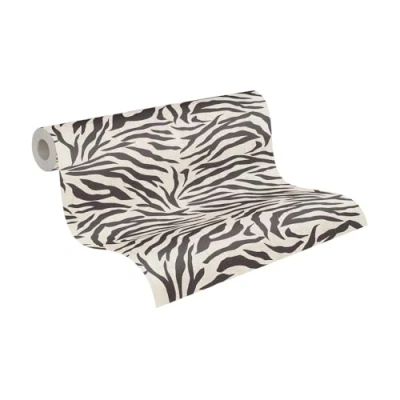 Livingwalls Anna D'Andrea Non Woven Wallpaper Animal 10,05 m x 0,53 Black, White Zebra Print 782171