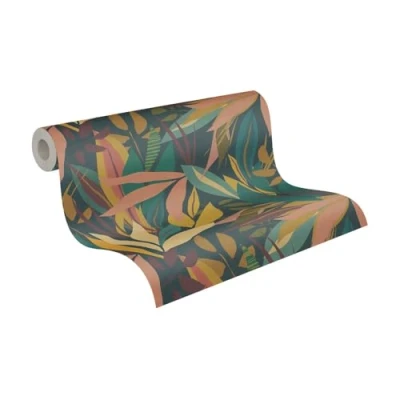 Livingwalls Anna D'Andrea Non Woven Wallpaper Floral 10,05 m x 0,53 Blue, Yellow, Green, Pink, Multicoloured Leaves 782091