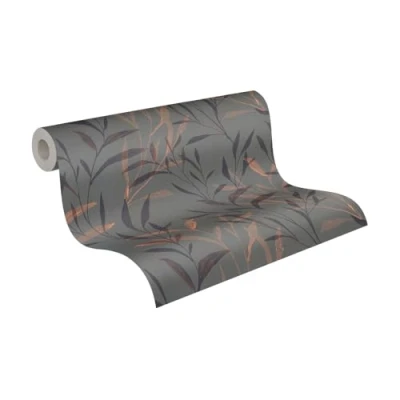 Livingwalls Anna D'Andrea Non Woven Wallpaper Floral 10,05 m x 0,53 Brown, Green, Orange, Grey Leaves 782222