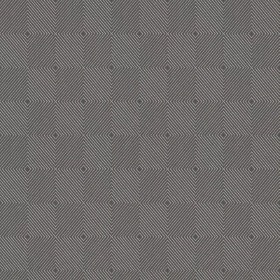 A retro-style geometric pattern of diamond shapes within diamonds with strong lines of symmetry. Shown in the dark grey colourway. Actual pattern repeat is 32 cm or 12.5 inches
