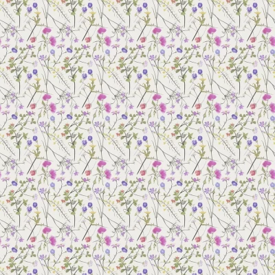 Bring the bright and vibrant style of a wildflower country garden to your interior, with small bunches of flowers and blooming flower heads against a contrasting background filled with entwining stems. Seen here in the White / Multi colourway.