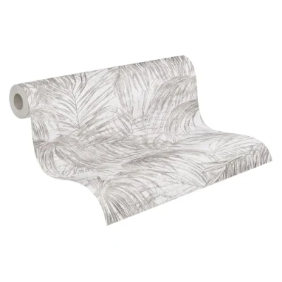 Livingwalls MICHALSKY 399813 Non Woven Wallpaper Palm Trees High Quality Jungle Design in White, Grey