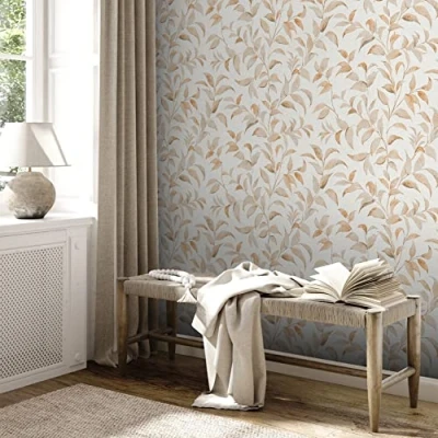 Livingwalls Premium Wall 2 389623 Non Woven Wallpaper with Leaves Design 10.05 m x 0.53 Made in Germany Orange White