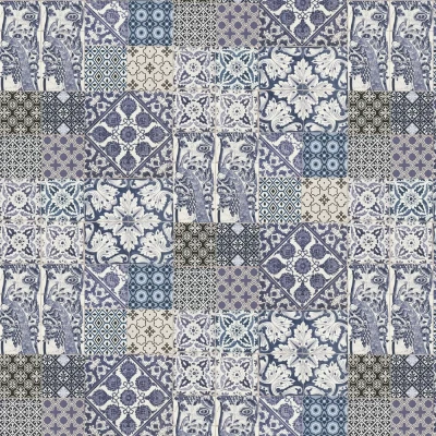 WallpaperDirectA classic blue and white faux tile design with different size tiles with decorative details. Shown in the purple blue and white colourway.Search: Peacock