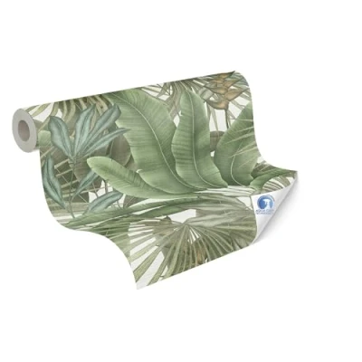 Livingwalls Wallpaper DESIGNDROP precovered Non Woven Jungle Look in Green, White 10,05m x 0,53m Floral Palm Leaf 784511