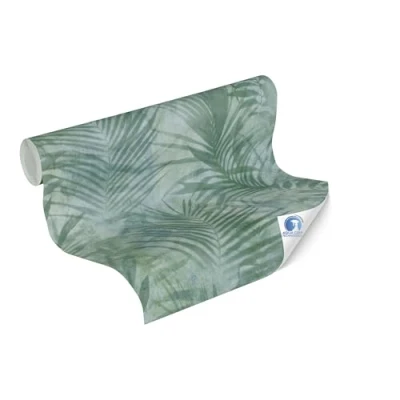 Livingwalls Wallpaper DESIGNDROP precovered Non Woven Palm Leaves in Green, Blue 10,05m x 0,53m Jungle Look 784521