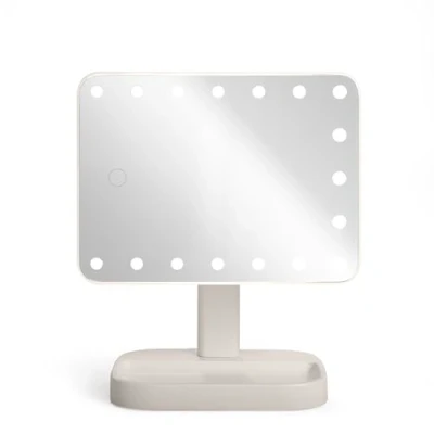 16.5 x 22 cm mirror with 17 LED light points and 3 light modes (warm, cold, combined) for always perfect light. Touch button to easily change the light modes and rotate 70° upwards and 90° on the sides for an ideal angle. Base with storage area, autonomy of 2 hours thanks to the 1000 mAh lithium battery, and rechargeable via USB-C cable included COMPACT: Discover a 6.5" x 8.7" makeup mirror, perfect for practical use while still being spacious enough for a detailed view. BRIGHT: Enjoy LED lighting with 17 bright points, providing optimal brightness for flawless makeup, even in low-light environments. VERSATILE: Choose from 3 light modes – warm light, cold light, or both combinations – to adapt the lighting to your needs and the desired ambience. CUSTOMIZE: Adjust the light intensity to your preference with built-in touch control, allowing you to create the perfect lighting for every situation. FLEXIBLE: Enjoy 70° upward rotation and 90° rotation on the sides for a personalized viewing angle and increased ease of use no matter where you are. Practical: Use the base equipped with a storage area to keep your makeup accessories close at hand, while maximizing your space. Battery life: Run wirelessly thanks to the 450 mAh lithium battery with a battery life of up to 2 hours, ideal for extended use. RECHARGEABLE: Easily recharge via the included USB-C cable, allowing you to keep the mirror ready to use hassle-free. ADAPTABLE: Use the mirror with or wireless, providing maximum flexibility for easy makeup at home or on the go.